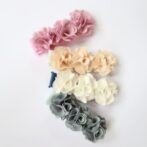 小さなフラワーモチーフを3つ並べたヘアクリップです。お子さまのヘアアクセサリーとしておすすめです。